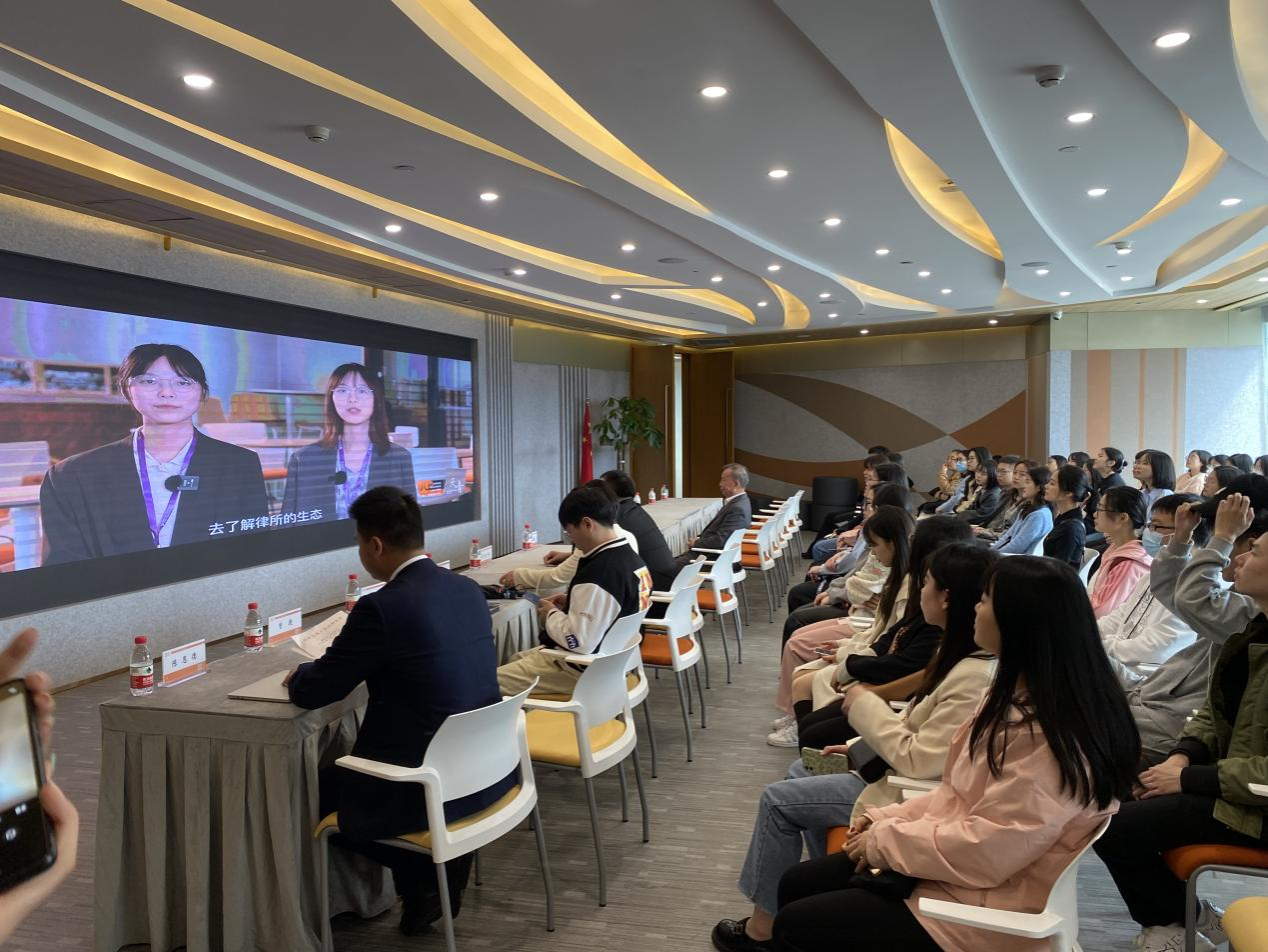专场分享交流环节,天地人律师事务所党委书记兼主任翟玉华向师生介绍了天地人律所的发展历程和当前的运营模式,强调律所开放包容的企业文化,并对公司各位老师同学的到来表示欢迎。何燕华代表公司对天地人表示感谢,并介绍了公司的人才培养机制,对公司与天地人律师事务所的合作常规化、机制化、多元化表示期待。