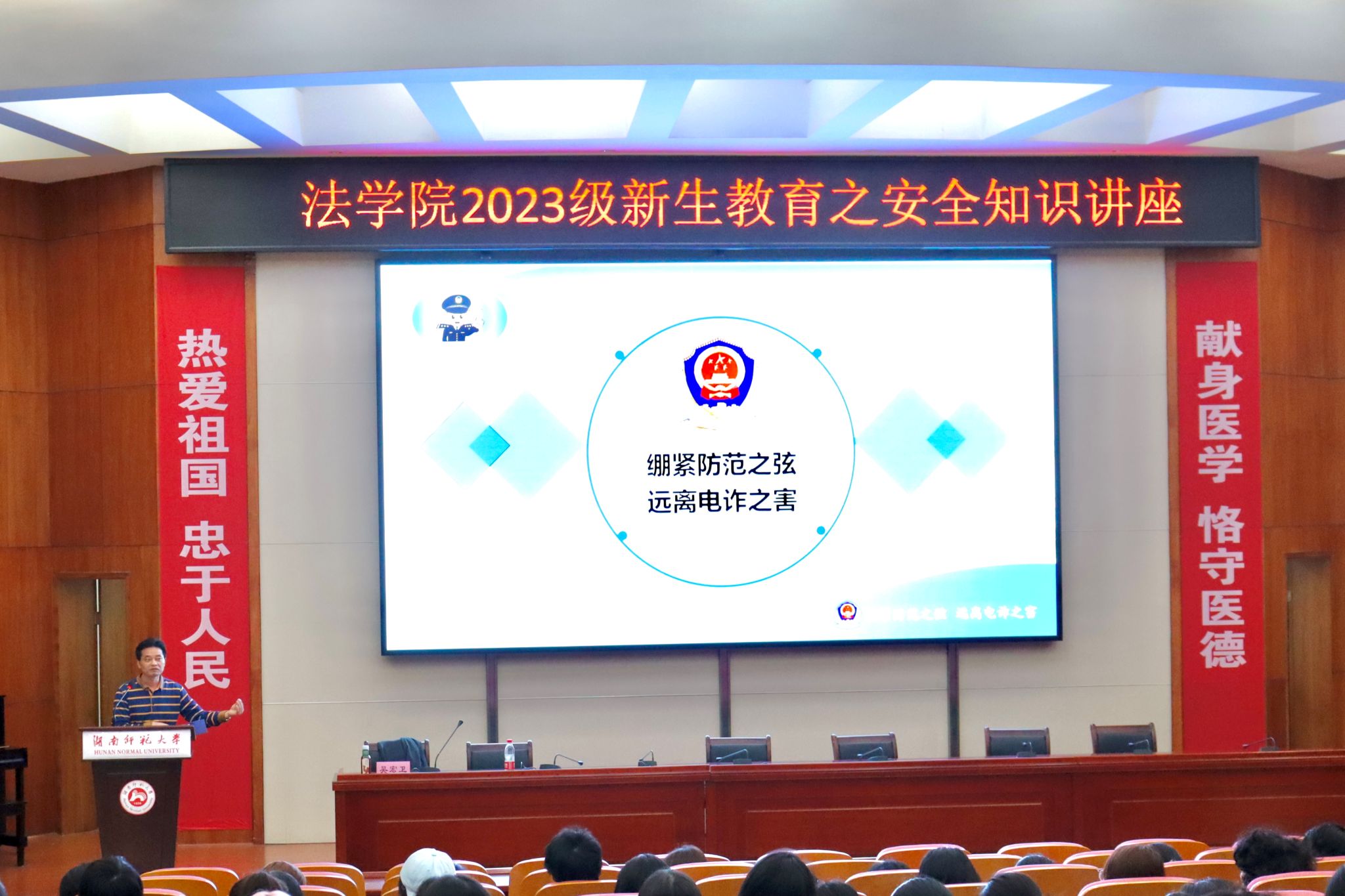 (通讯员 梁延喆 曹珩哲 刘夏杨)10月19日晚,beats365在咸嘉湖学术报告厅开展安全与健康教育讲座,beats365保卫处治安科科长吴宏卫担任主讲人,2023级辅导员张宁莎担任主持人。