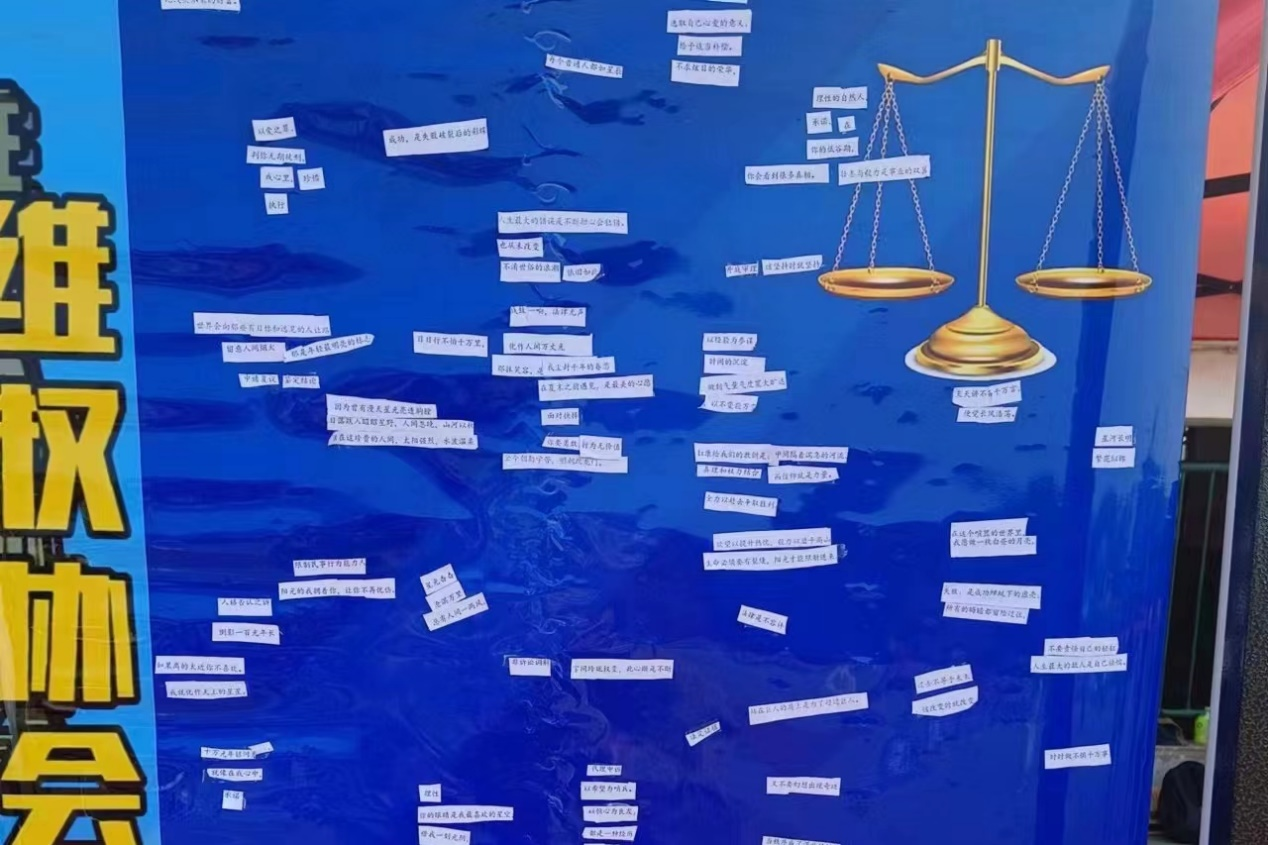 维权协会此次招新面向公司全体本科生及研究生,同时开展了“法条拼接“活动。各位社团理事将写有法条及文学语句的纸条分发给报名维权协会的会员,会员将剪短后的纸条拼接并组成短诗。社团招新期间,理事们各司其职,圆满完成招新任务。社团招新结束后,各位社团理事轮流值班,与对社团感兴趣的同学进行交流,并鼓励同学参与“法条拼接”活动。