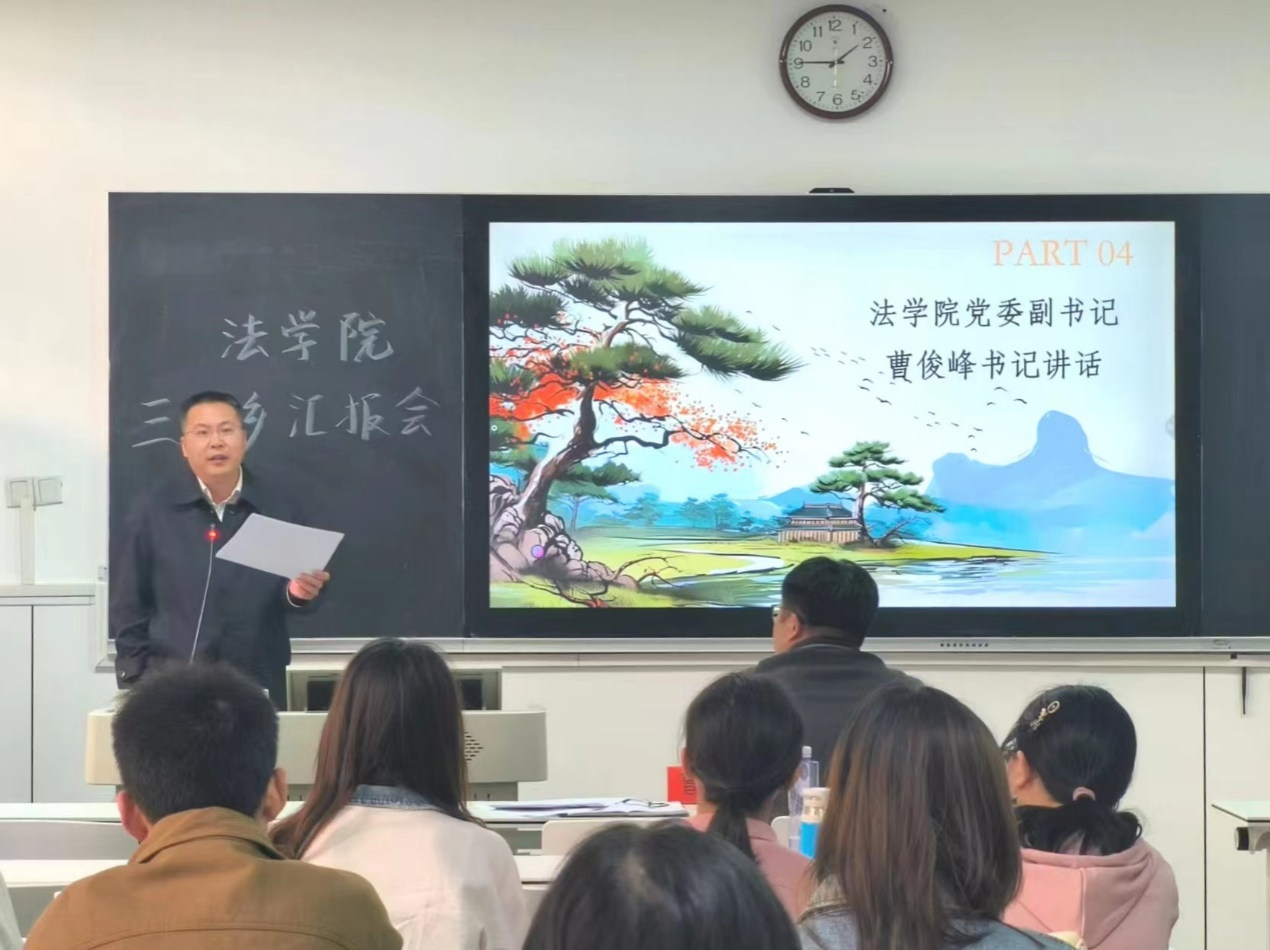 曹俊峰副书记对汇报会进行总结。他对参加“三下乡”暑期社会实践活动的同学们表示充分肯定,高度认可同学们在“三下乡”活动中取得的成果,同时指出相关问题和不足。他对同学们提出了三点希望:一是希望“三下乡”活动队伍规模进一步扩大,增加队伍人数;二是希望“三下乡”队伍的脚步走得更远,尽可能走向外省;三是希望“三下乡”活动主题更加聚焦现实问题,与实践基地形成长期合作,打造品牌项目。同时,他对院团委下一步工作提出了两点要求,一是要求活动指导更加有力,实现专业老师指导的全覆盖;二是相关保障要更加有力,尽量发挥公司、社会和员工资源和力量支持同学们更好开展“三下乡”活动。