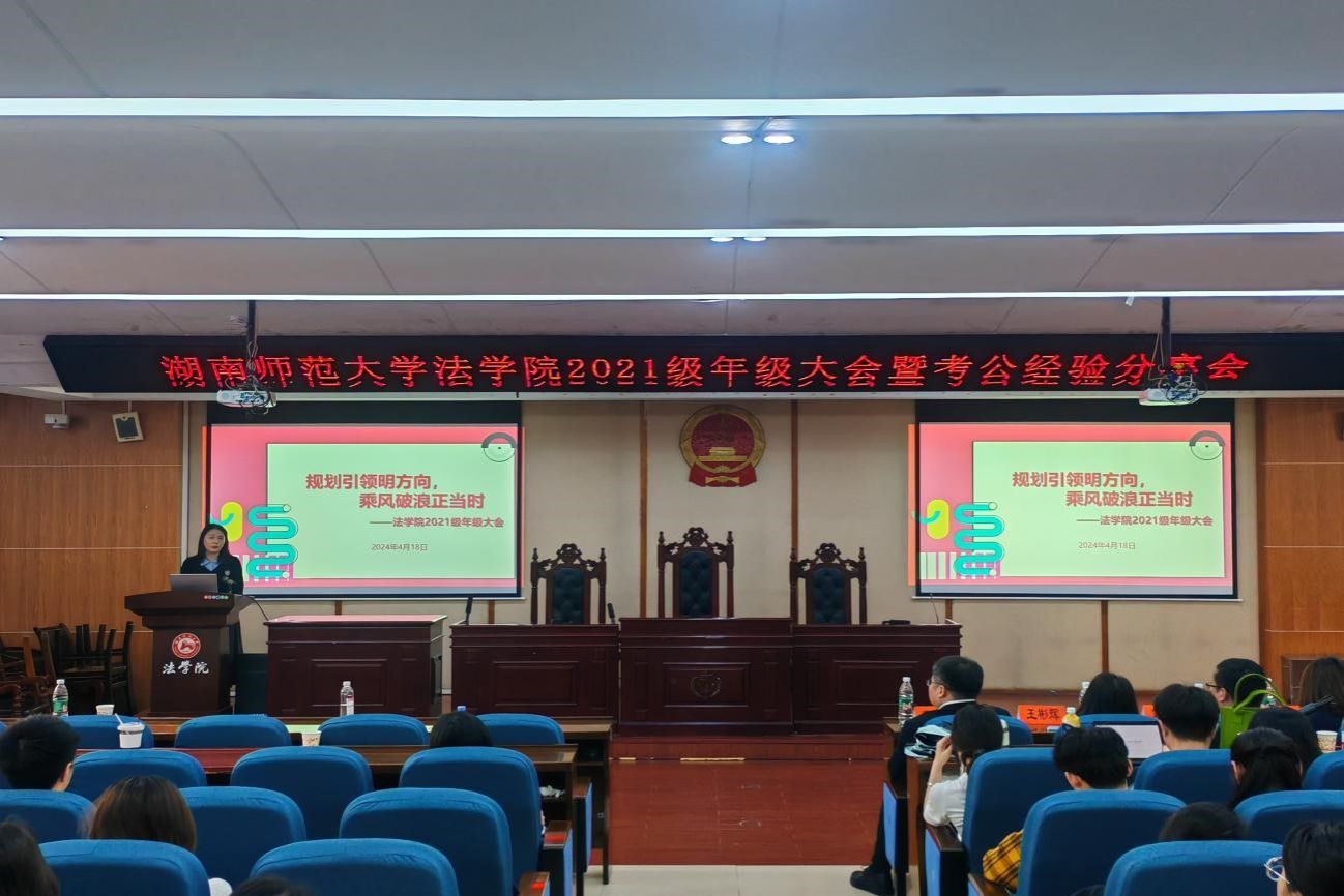 (通讯员 陈文杰 施颖 胡康文)4月18日中午,公司2021级本科生年级大会暨考公经验分享会在景德楼模拟法庭召开。公司党委副书记曹俊峰,2021级班导师代表王彬辉、刘琳、吴彬彬参加此次会议,2022级法学第二学士学位班本科生范金垚,2020级法学专业本科生石洁进行经验分享。会议由2021级辅导员许华燕主持。