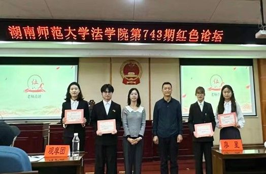 会议伊始,全体起立奏唱团歌。随后,现场展示部分支部学习成果,并以线上投票形式进行手抄报作品评比。四位主讲人结合学科特色和自身感悟依次讲述了他们对习近平总书记湖南考察重要讲话精神的理解和体会。林力探讨了红色湘女文化精神在新时代下的指导和引领意义,激励湖湘青年挺膺担当;刘朝岩认为青年学子要继承和发扬湖南红色文化和精神特质,求真务实地面对现实挑战,以实现个人成长、创造社会价值;张榕哿联系实际从多角度讲述对习近平总书记湖南考察重要讲话精神的体会;金灵强调了法治与德治相辅相成的必要性,表达了自己对于法科学子应如何成长为德法兼修的法治人才的看法。接着,四位主讲人依次就同学们的提问进行回答。