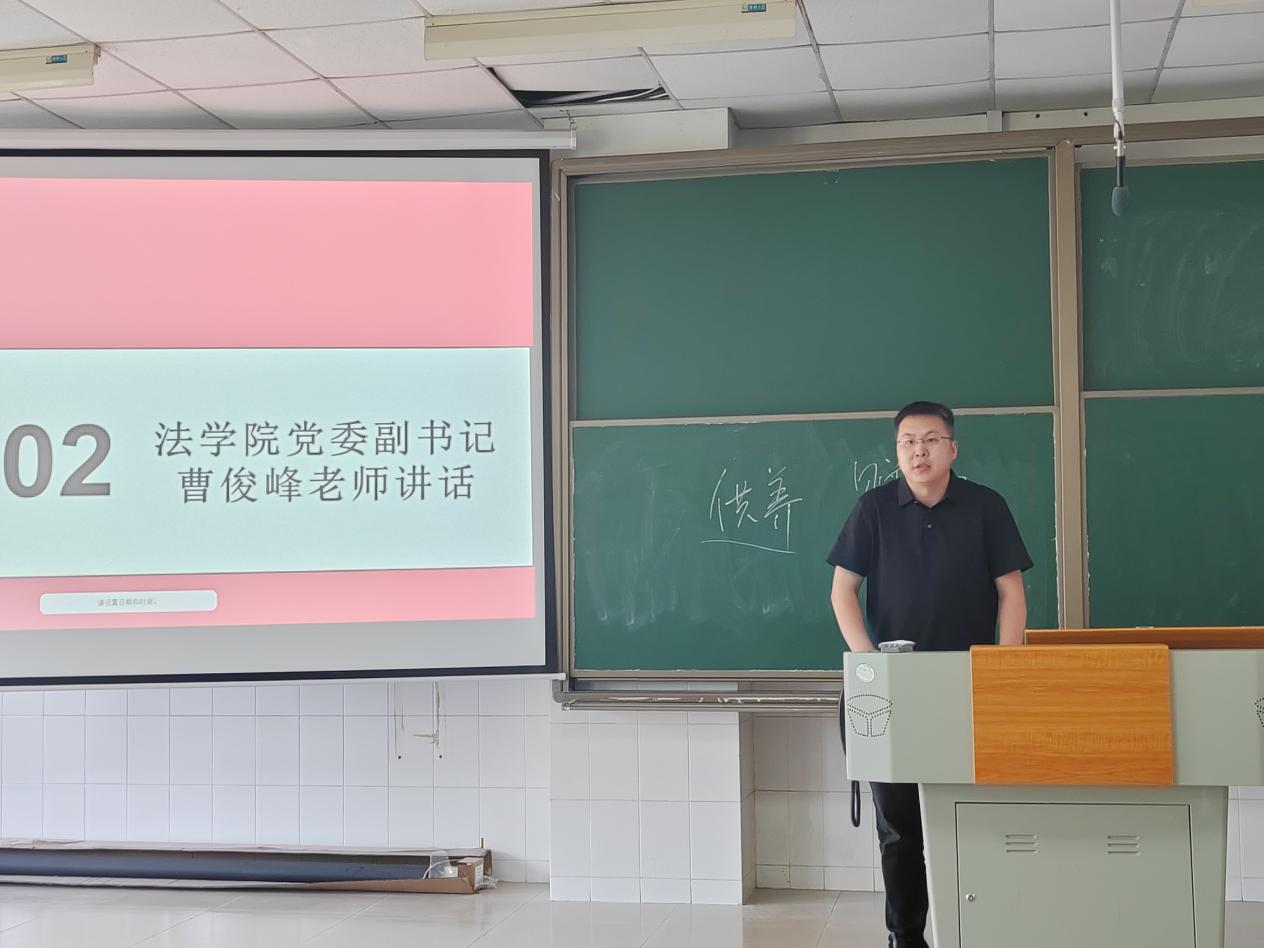 随后,曹俊峰就相关部署作出说明,指出法律实务部门实习在帮助同学们提高能力与素养的重要意义,希望同学们以更加积极的态度投入本次实习。对于同学们目前所面临的备考与实习的冲突与压力,建议备考与实习双线并行,在理论与实务的碰撞中加深对法学的理解。