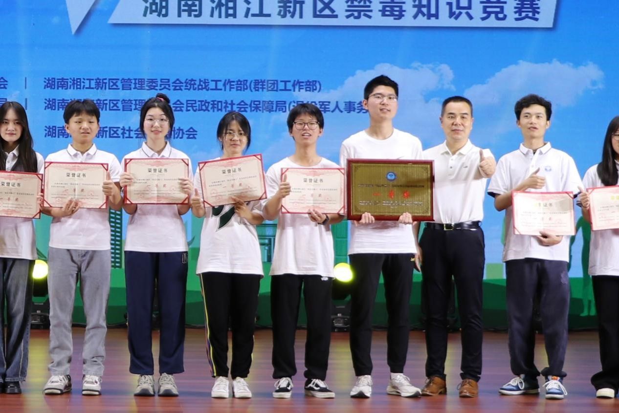 公司参赛队伍由2023级本科生刘雨曼,2022级本科生林宏伟、周荣威三人组成,领队由2022级辅导员廖星担任。在“我是答题王”禁毒知识竞赛老员工组初赛中,公司队伍成功晋级六强,在决赛环节从湖南大学、长沙医公司、湖南工商大学等众多高校中脱颖而出,荣获湘江新区“我是答题王”禁毒知识竞赛老员工组第一名。