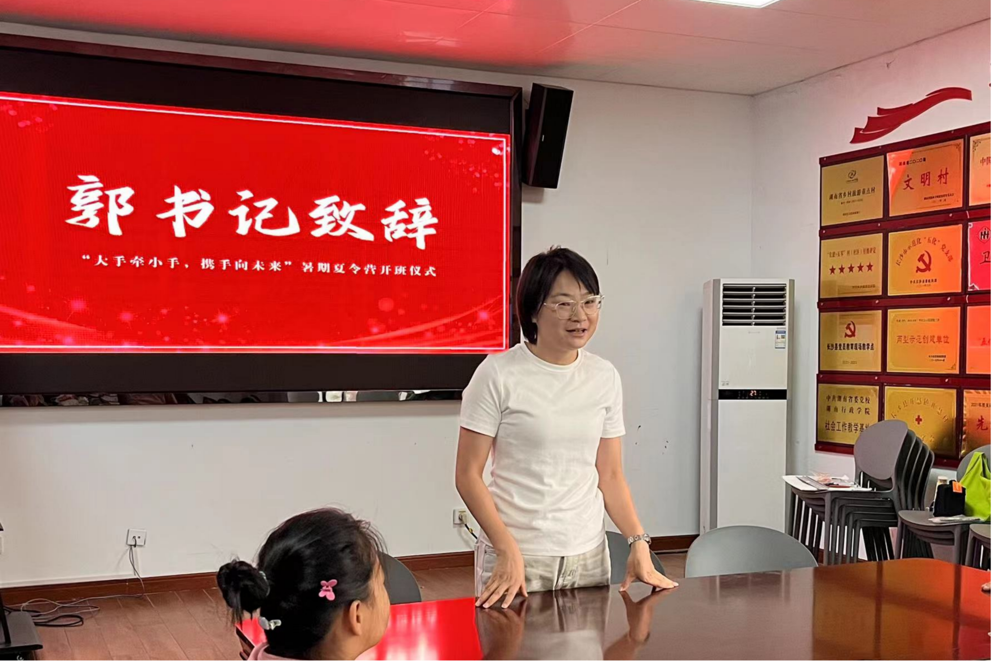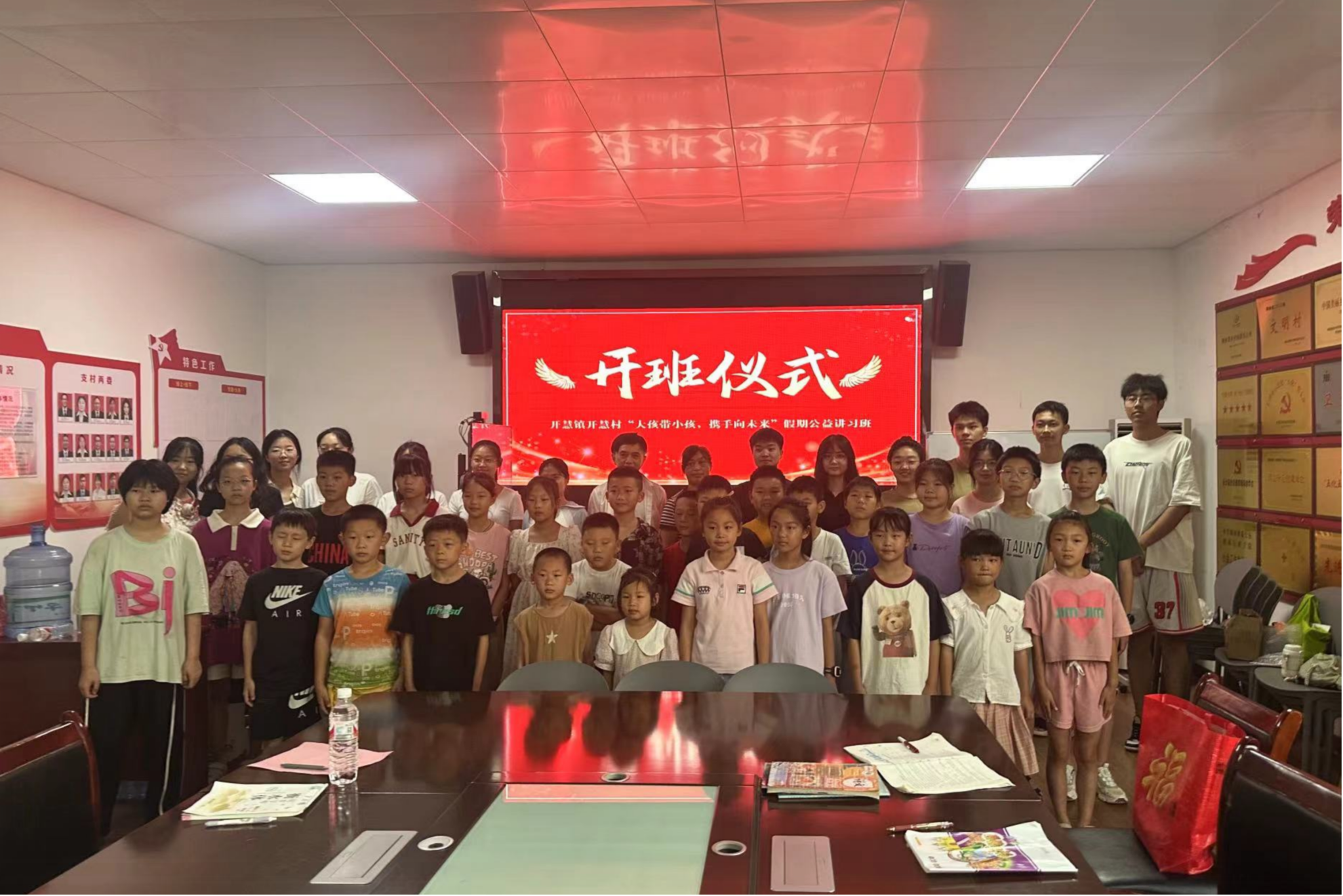 (通讯员 姜璐瑶 王艺鸣 宋垚)7月10日,公司赴开慧镇“智汇开慧,法润心田”暑期社会实践团“大孩带小孩,携手向未来”暑期公益讲习班于开慧村村委会举行开班仪式,并正式开展授课,开慧村党总支书记郭翠出席此次会议,仪式由实践团队长杨科主持。