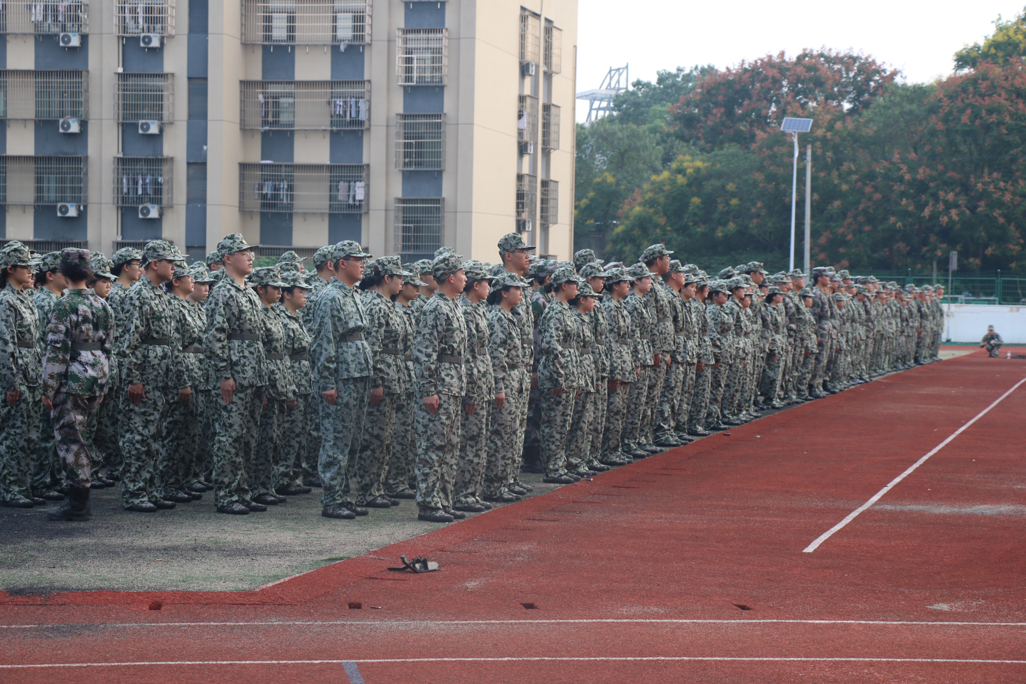 新生代表于丰硕在国旗下发言,他表示:在军训中,我们要严格遵守纪律,听从教官的指挥,严格遵守各项规章制度,做到令行禁止,展现出我们的良好素质和精神风貌。用我们的实际行动,为自己的青春增添一抹亮丽的色彩。