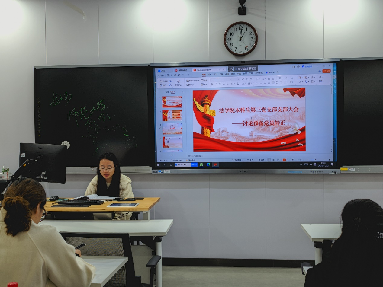 (通讯员 周荣威)11月22日中午,公司本科生第三党支部在beats365102教室召开预备党员转正支部大会。此次大会到会正式党员4名、预备党员12名,由本科生第三党支部员工副书记汪欣主持,支部书记胡钰琬老师参与此次会议。