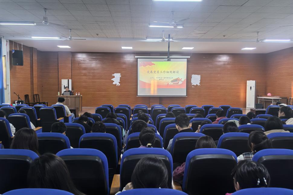 蔡雪冰从介绍发展党员标准、中国历史发展入手,并结合自身成长经历向同学们解读发展党员工作细则。蔡雪冰简要介绍了中国共产党的入党程序,向同学们提出了自愿申请、经常汇报等要求,同时强调不仅要组织上入党,更重要的是思想入党,长期接受党组织的考验。