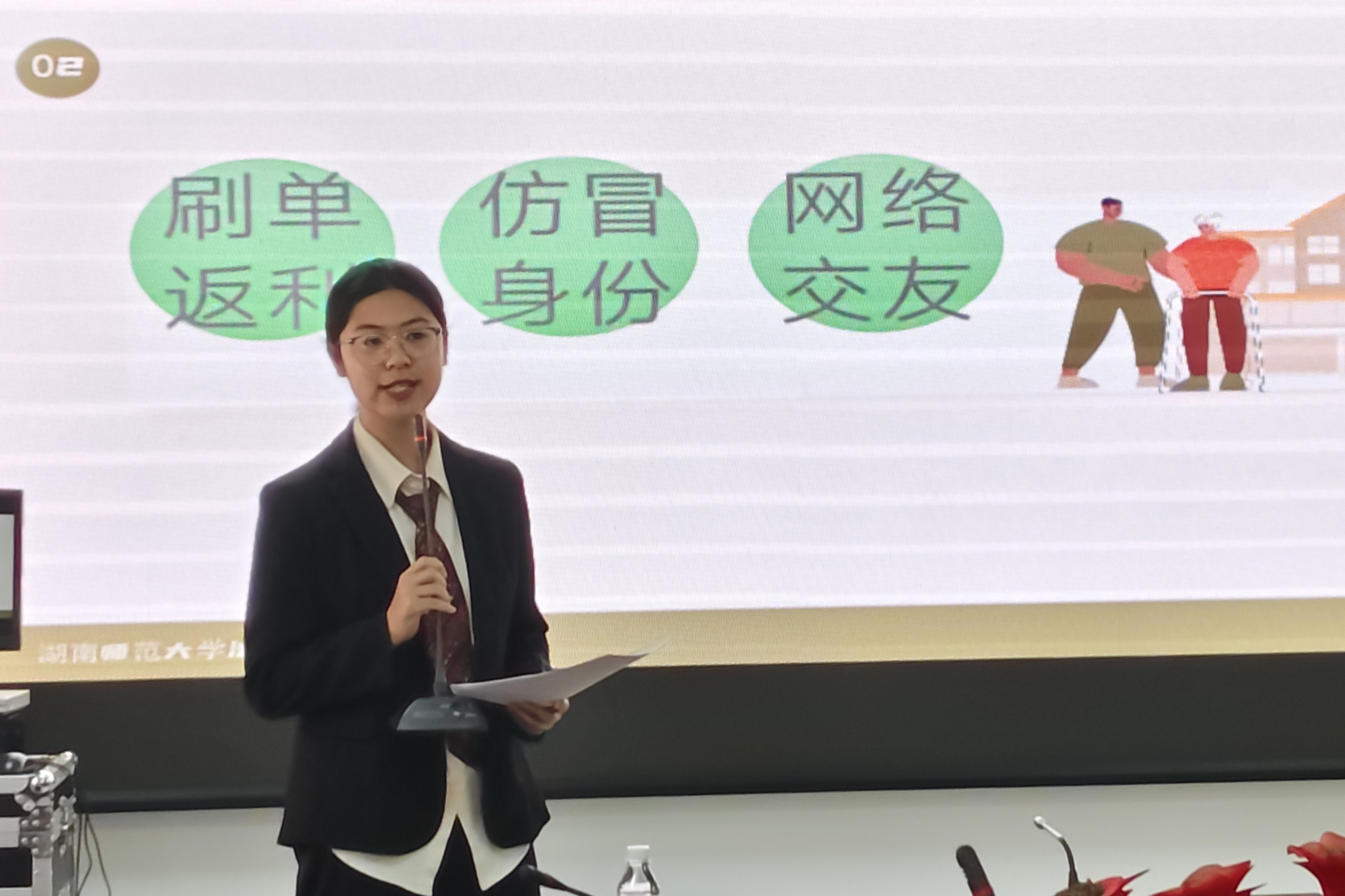 讲座伊始,王佳慧用多个现实案例导入,从法律、社会保障和家庭责任三个方面讲述了如何有效保障老年群体的合法权益。贺子洛列举了刷单返利、网络交友、冒仿身份等常见的欺骗套路,通过案例讲解与现场观众一同分享了老年人面临诈骗问题的现状、预防方法与救济措施。呼吁大家增强财产的保护意识,远离诈骗陷阱。彭瑜系统解释了与财产处分相关的权利包括所有权、赠予权、遗嘱设立与变更权以及信托权,为处理财产权利纠纷,确保自己的权益提供思路。