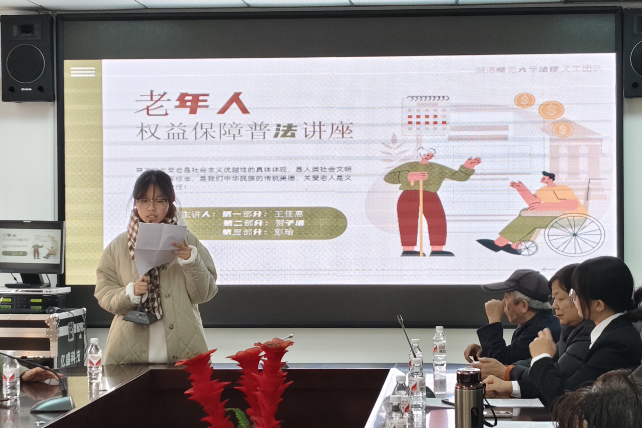 (通讯员 曾善美 孔维一 张诗哲)11月28日下午,公司法律义工团队在学堂坡社区公共服务中心二楼会议室开展主题为“老年人权益保障”的普法专题讲座。公司法律义工团队成员王佳慧、贺子洛、彭瑜担任主讲人。