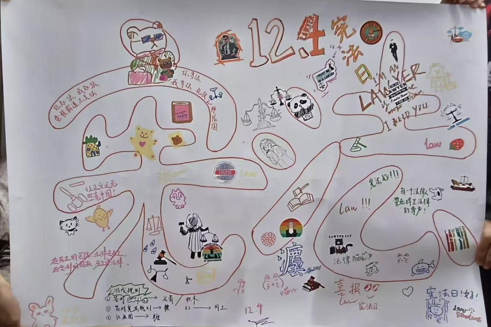 本次主题普法宣传活动围绕宪法知识问答展开,吸引了众多过往师生参与答题,大家都表现出对宪法知识的学习热情和求知欲。在活动过程中,义工们耐心地解释了我国现行宪法的背景和意义,帮助同学们更好地理解和掌握宪法知识。师生们也纷纷提出自己的疑问和看法,展现出良好的法治素养。此外,还有互动小游戏、留言板绘画以及讲述宪法故事等环节,让大家在轻松愉快的氛围中,更加深入地了解宪法的精神和意义。