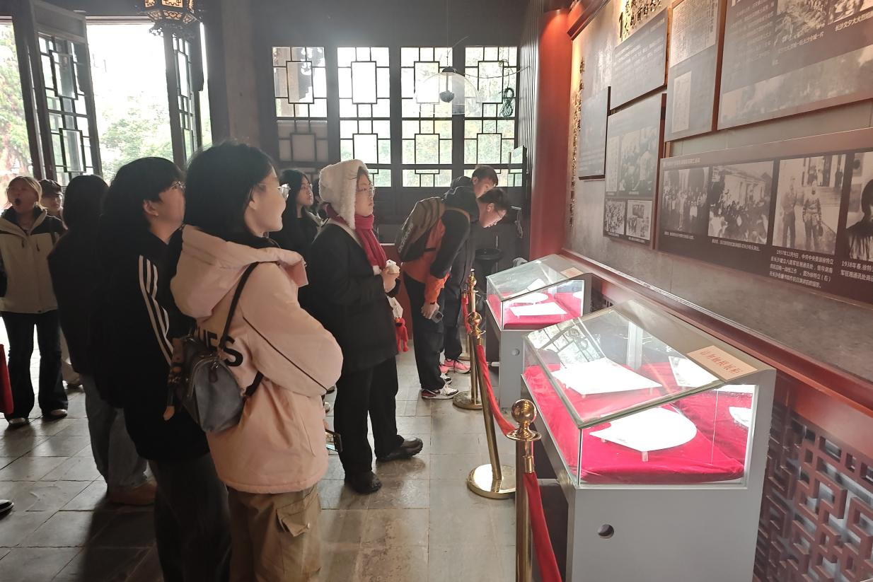 活动开始,学员们参观了忠烈祠内抗战专题展示柜,深入了解了淞沪抗战中各位革命先烈的英雄事迹,对那段艰苦抗战的峥嵘岁月进行了追忆与缅怀。随后,学员们继续参观了忠烈祠南侧壁上刘建绪撰书的《第四路军阵亡将士麓山忠烈祠记》,以及beats365吴容甫教授撰文,颜家龙教授所书《重修麓山忠烈祠记》,缅怀革命先烈并表达了自己的崇高敬意及向其学习的决心。麓山忠烈祠不仅是纪念抗日阵亡将士的场所,也是一处爱国主义教育基地,通过展示烈士们的英勇事迹,激励着学员为国家、民族献出自己的忠诚与力量。
