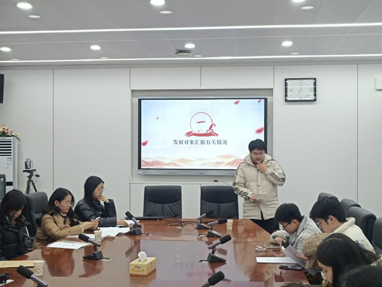 会议伊始,发展对象张博文就自己的相关情况向党组织进行汇报。随后,入党介绍人杨依曼同志介绍张博文的有关情况,支委会报告对张博文的审查情况,与会党员结合申请人的日常表现、群众意见及培养联系人的反馈,进行了充分的讨论和交流。经过无记名投票表决,大会一致通过了接收张博文同志为中共预备党员的决议。