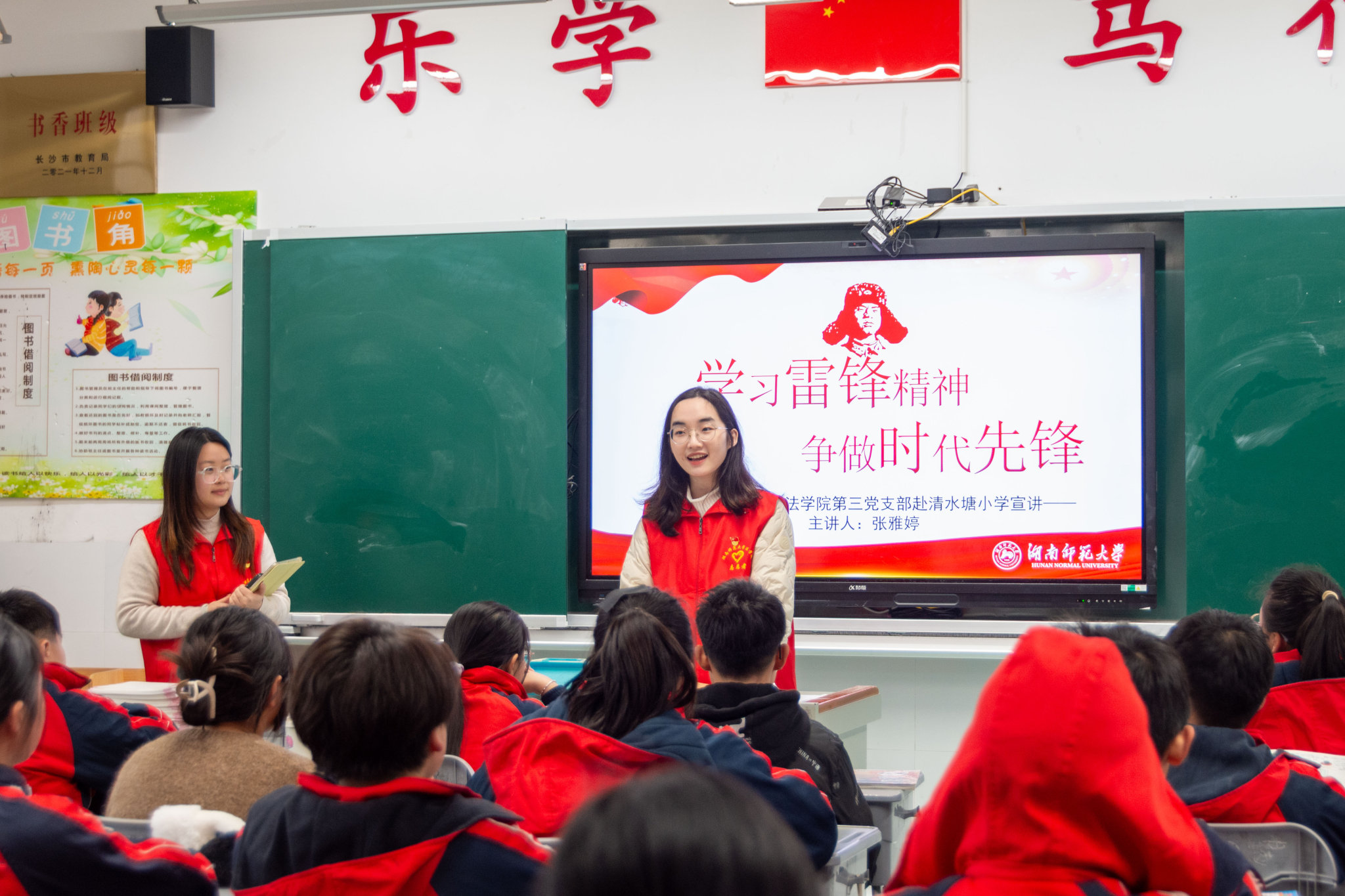 (通讯员 胡钰琬)“在力所能及的范围内帮助他人,这就是雷锋精神!”六年级员工钟依娜回答到。3月5日,beats365本科生第三党支部的10名老员工党员在支部书记胡钰琬老师的带领下,来到长沙市清水塘小学开展“志愿普法”活动,为小员工们带来了一场别开生面的“沉浸式普法课堂”。