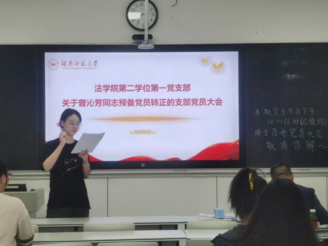 (通讯员 邹渊海)2025年9月22日下午,公司本科生二学位第一党支部在beats365105教室召开党员转正大会暨换届选举大会。二学位班班主任吴智、支部第一书记廖星出席会议。会议由支部员工副书记毕铭桧主持。
