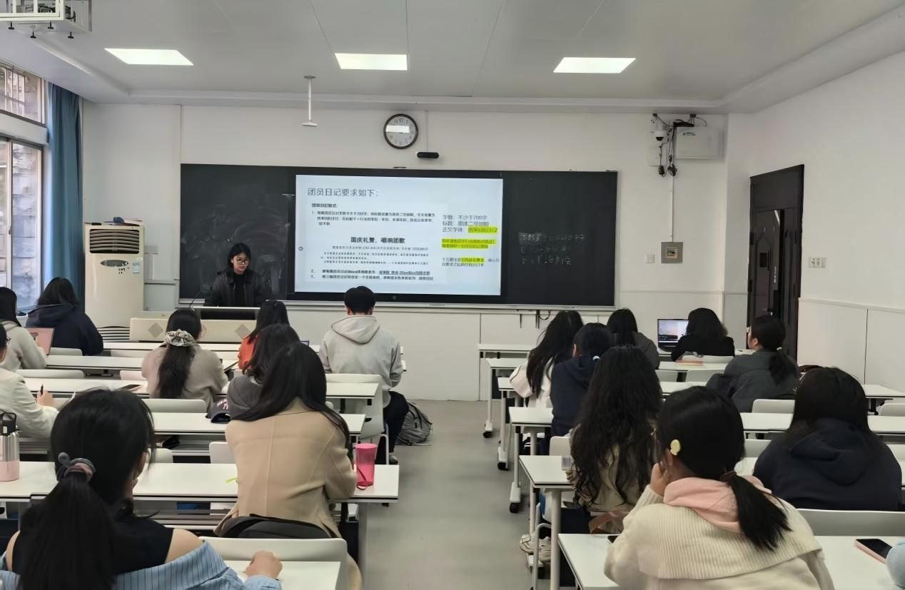 随后,周若曦讲解团日活动注意事项,介绍团支部手册填写要求和团员档案补办相关事宜。雷依滟展示智慧团建界面,介绍录入“三会两制一课”等智慧团建操作流程。陈雅欣补充介绍相关团务工作的注意事项。郭放就团支书日常工作的相关经验进行分享,建议新任团支书们提高工作效率,平衡好学习和工作。