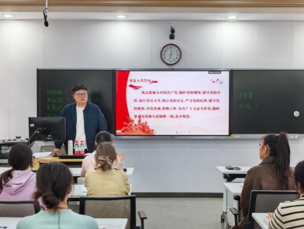 公司本科生第一党支部第一书记廖星对上述同志表示祝贺,叮嘱各位同志在今后的学习生活中严格要求自己,进一步发挥党员的先锋模范作用,并带领与会党员重温入党誓词。