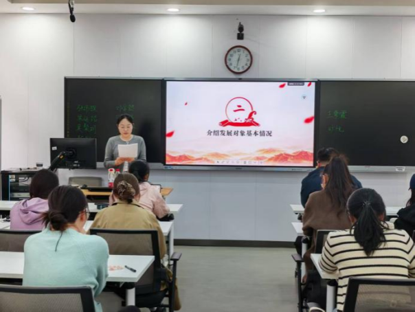 随后,王紫霞、旷悦上台发言,汇报了预备期一年内思想、工作、学习等方面的内容。王艺鸣介绍两位预备党员的基本情况,由苏娟代表支部委员会向大会汇报预备党员的审查意见,经现场无记名投票,党员大会一致表决通过,同意旷悦、王紫霞转为中共正式党员。