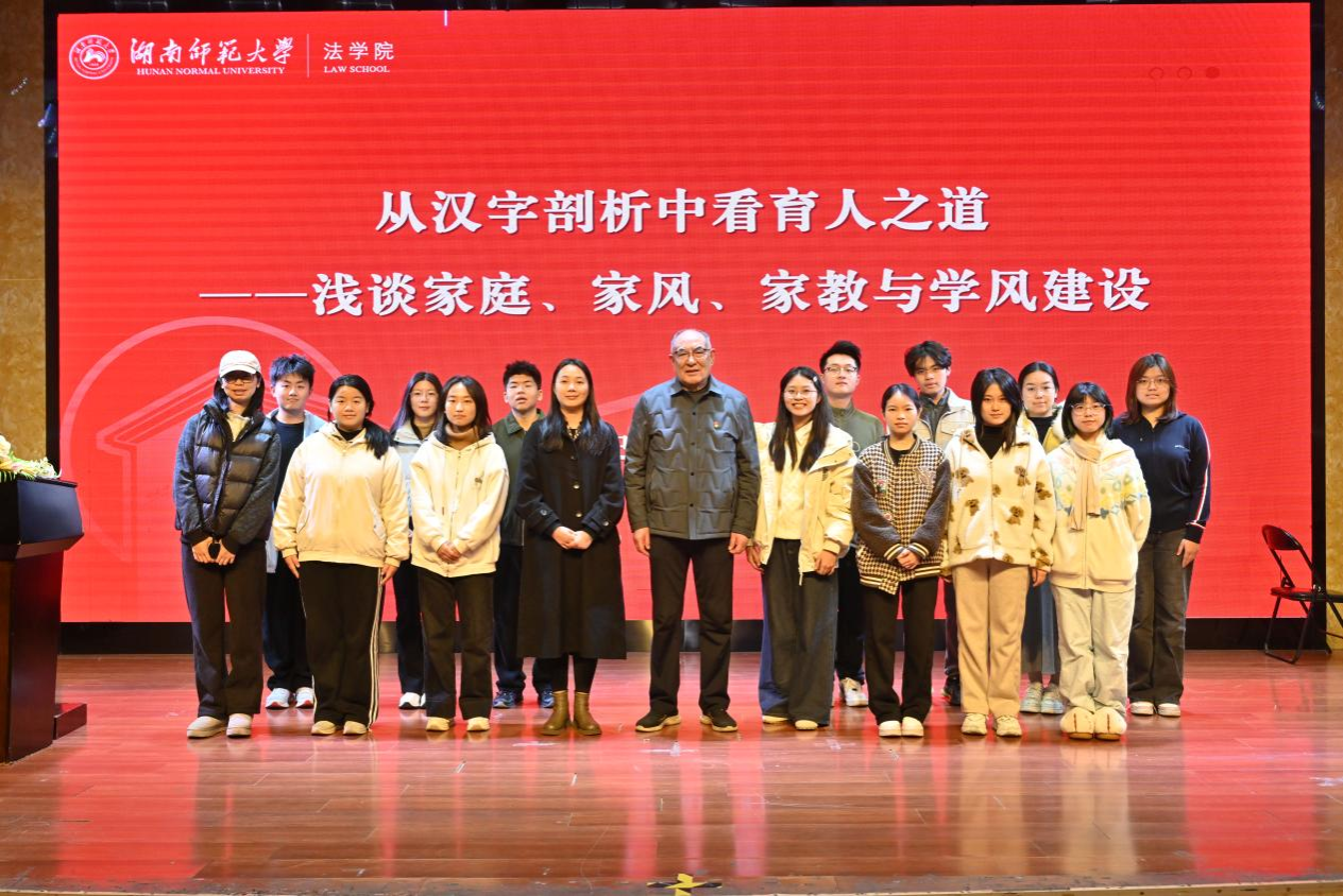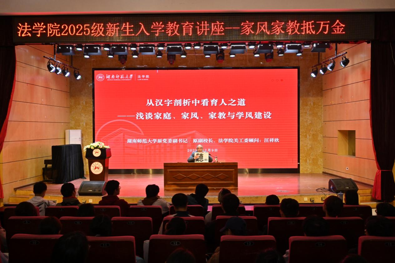 讲座中,汪祥欣以“从汉字剖析中看育人之道”为题,围绕家庭、家风、家教与学风建设进行深入阐释。他通过拆分“聪”“德”“路”等汉字的字形与内涵,结合革命故事与自身经历,深刻点明四者间的逻辑关联:家庭是育人根基,家教是重要方法,家风是精神灵魂,学风是实践果实。汪祥欣强调,育人之路环环相扣,唯有筑牢家庭根基、抓实家教方法、涵养家风灵魂,方能培育出优良学风。他勉励全体法院新生,要从汉字智慧中悟透育人之道,以优良家风筑牢立身之本,以严谨家教涵养品德修为,以扎实学风锤炼专业本领。