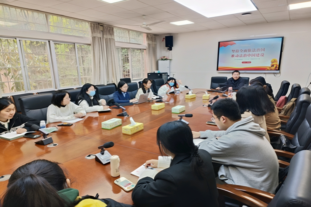 曹俊峰以“坚持全面依法治国、推动依法治国中国建设”为主题,从坚持全面依法治国的重大意义以及下一步的方向和目标两个方面对学习贯彻党的二十大专题进行了交流汇报。曹俊峰通过对中共中央关于党的百年奋斗重大成就、历史经验的决议和二十大报告的有关内容的解读,阐述了要坚持全面依法治国的原因。曹俊峰介绍了习近平法治思想的形成过程及其重要地位,并着重解析了二十大报告指出的下一步方向和目标,以及全面依法治国在立法、执法、司法、守法四个方面的工作布局。课程最后,他对于法治的概念及意义作出重申和总结。