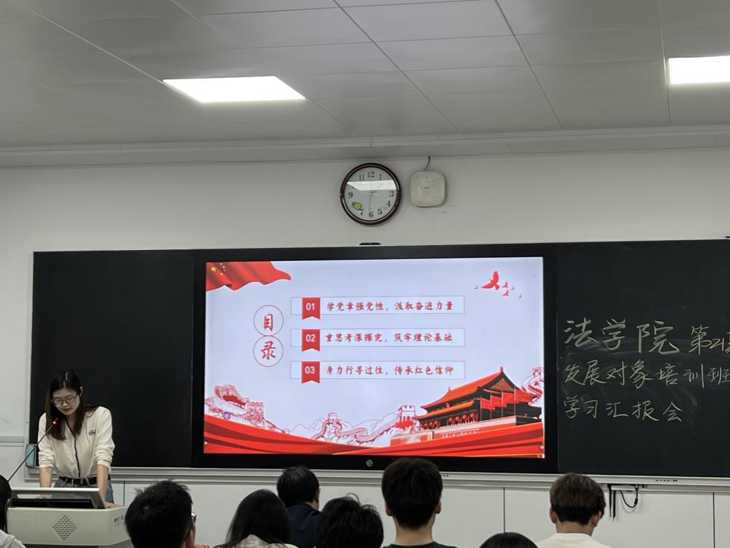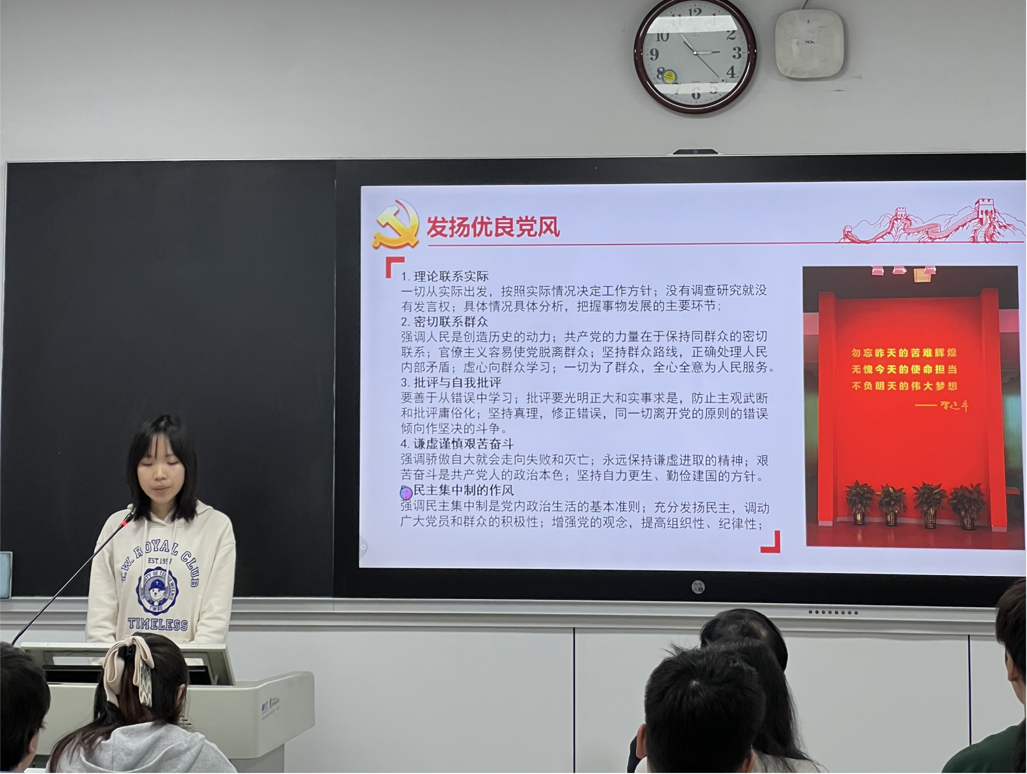 在学习汇报中,培训班各小组围绕培训内容、专题讨论、学习心得等方面依次上台进行了汇报。第一组以“永远跟党走,奋进新征程”为主题,通过小组成员观点展示的方式,图文并茂地展示了各项活动的开展状况。第二组通过文字阐述了参加的各项培训内容,分享了小组成员的学习心得。第三组选取参加的四次专题讨论和两次实践活动与大家进行交流。第四组则以“传承红色基因以赞峥嵘岁月”为主题,分三个阶段汇报了学习进步与思想强化的过程。