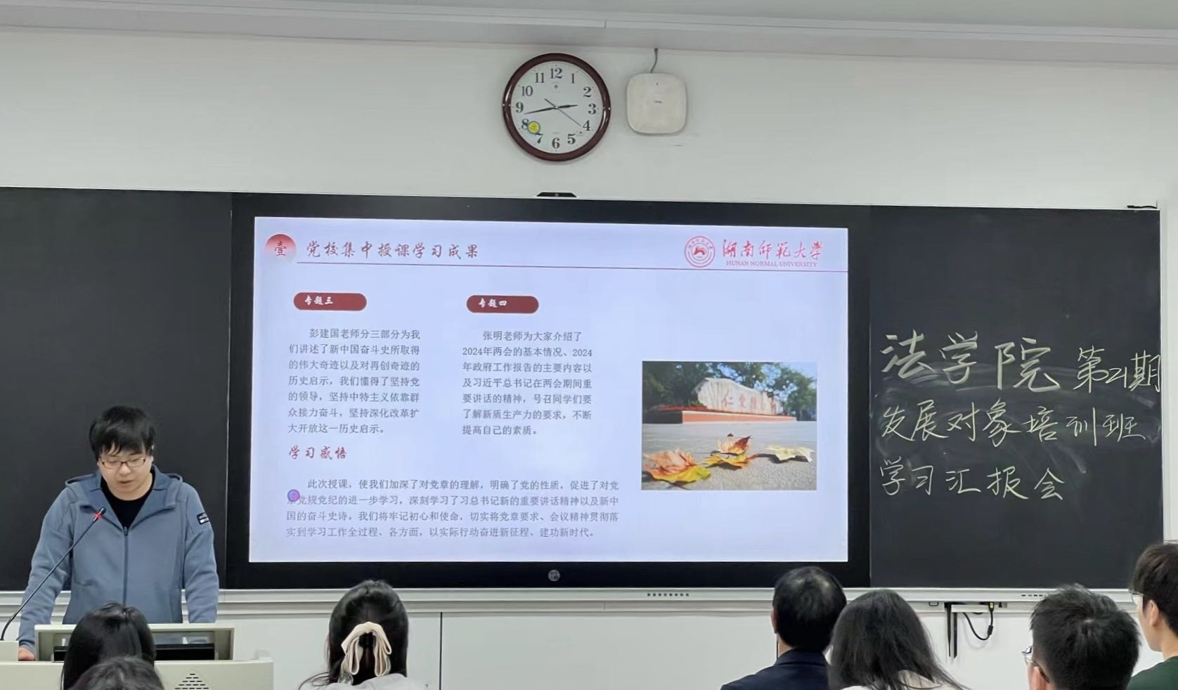 陈胜国肯定了培训班学员近期的综合表现情况,他表示,经过近期的培训学习,学员们的思想认识明显提升、理论知识逐渐加强、精神面貌更加饱满。针对学习中的不足之处,陈胜国为学员们提出了三点建议,一是语言表达要更为生动,体现真实的学习体会;二是要摆正发展对象的角色,学习认识要达到新高度;三是要将理论与实践结合,在实践中更精准地了解相关情况,运用理论知识对自己的言行予以指导和约束。