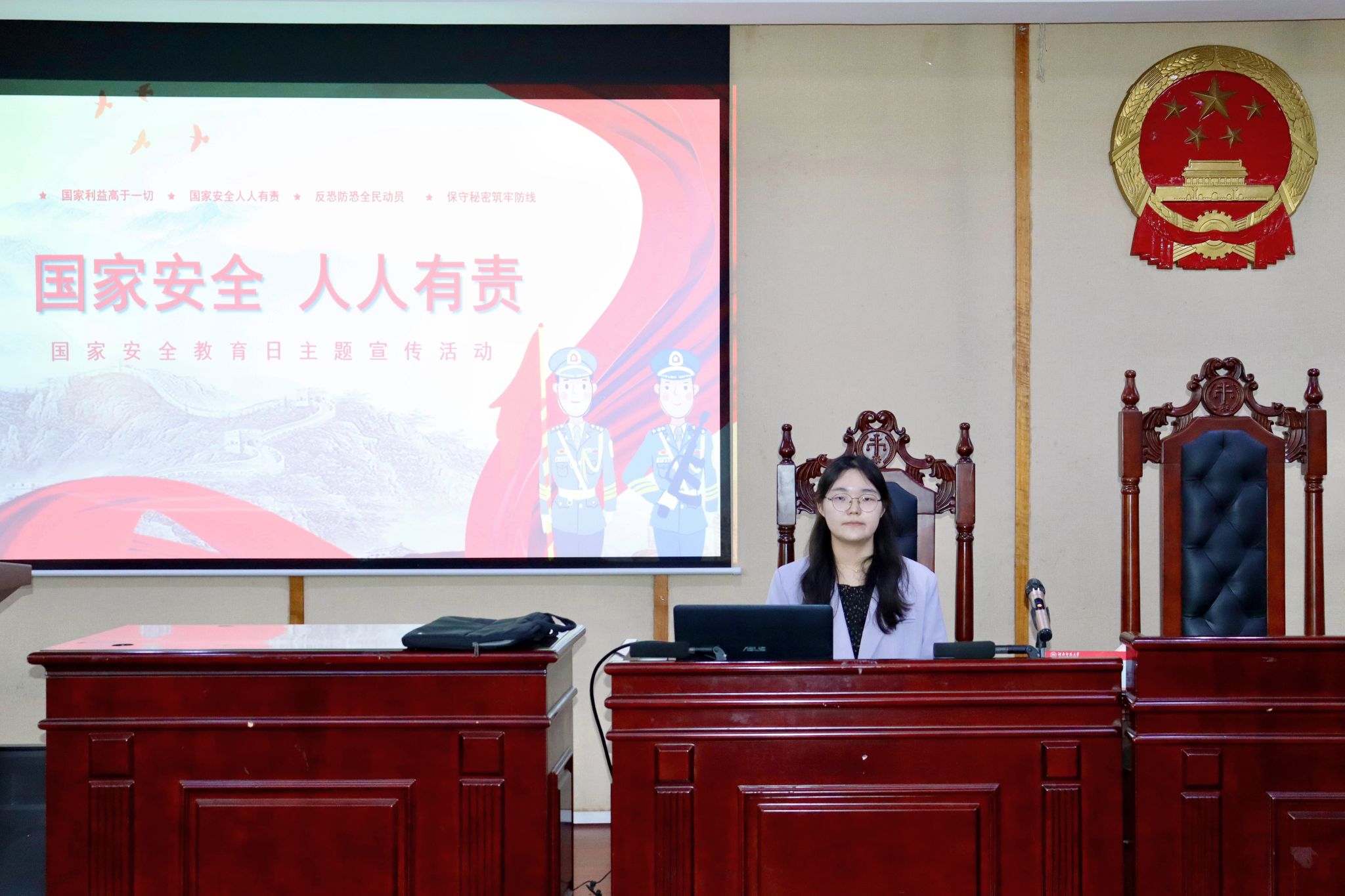 (通讯员 成雨霏 罗璇)4月17日中午,由公司研究生团委组织开展的“保守国家秘密,维护国家安全”主题团日活动在景德楼模拟法庭举行。活动由公司研究生团总支副书记黄江曼主持。