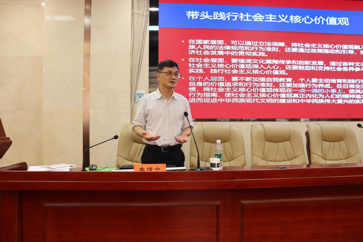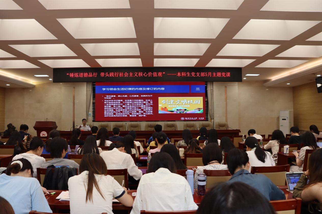 (通讯员 俞煊 朱新酉)5月23日下午,公司党委书记唐建文在205多功能报告厅为本科生党支部讲授5月党课,党课的主题是“锤炼道德品行——带头践行社会主义核心价值观”,2021级辅导员、本科生第二党支部第一书记许华燕,2022级辅导员、本科生第一党支部第一书记廖星参加本次党课。