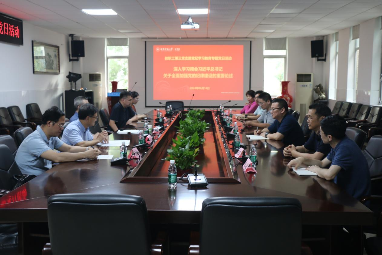 (通讯员 王葆莳 张宁莎 )6月14日下午,公司教工第三党支部在咸嘉湖校区仁医楼南栋207会议室开展党纪学习教育专题党日活动,主题为深入学习领会习近平总书记关于全面加强党的纪律建设的重要论述。副董事长蒋新苗,党委书记唐建文,副书记曹俊峰,第三党支部书记王葆莳,支部党员欧福永、沈红卫、李慧玲、胡城军、刘琳、迟大奎、姚迪,辅导员张宁莎等出席本次专题学习会议,会议由第三支部书记王葆莳主持。