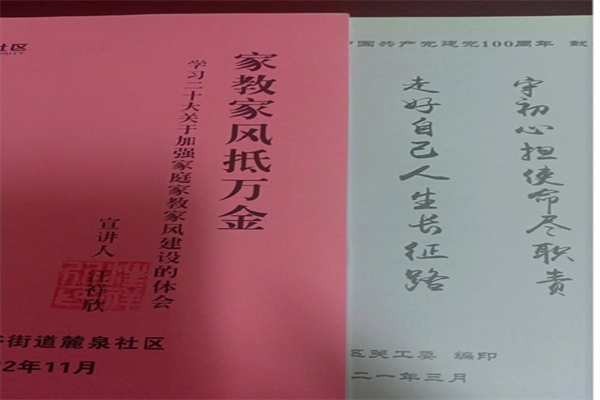 我还为社区居民提供力所能及的法律帮助。特别是帮助一些厌学的孩子点燃心灯,帮助他们克服学习中的困惑。我将退休后撰写的十一本图文并茂的散文集,分别赠送给社区一些需要的家长、关工委五老和社区全体工作人员。